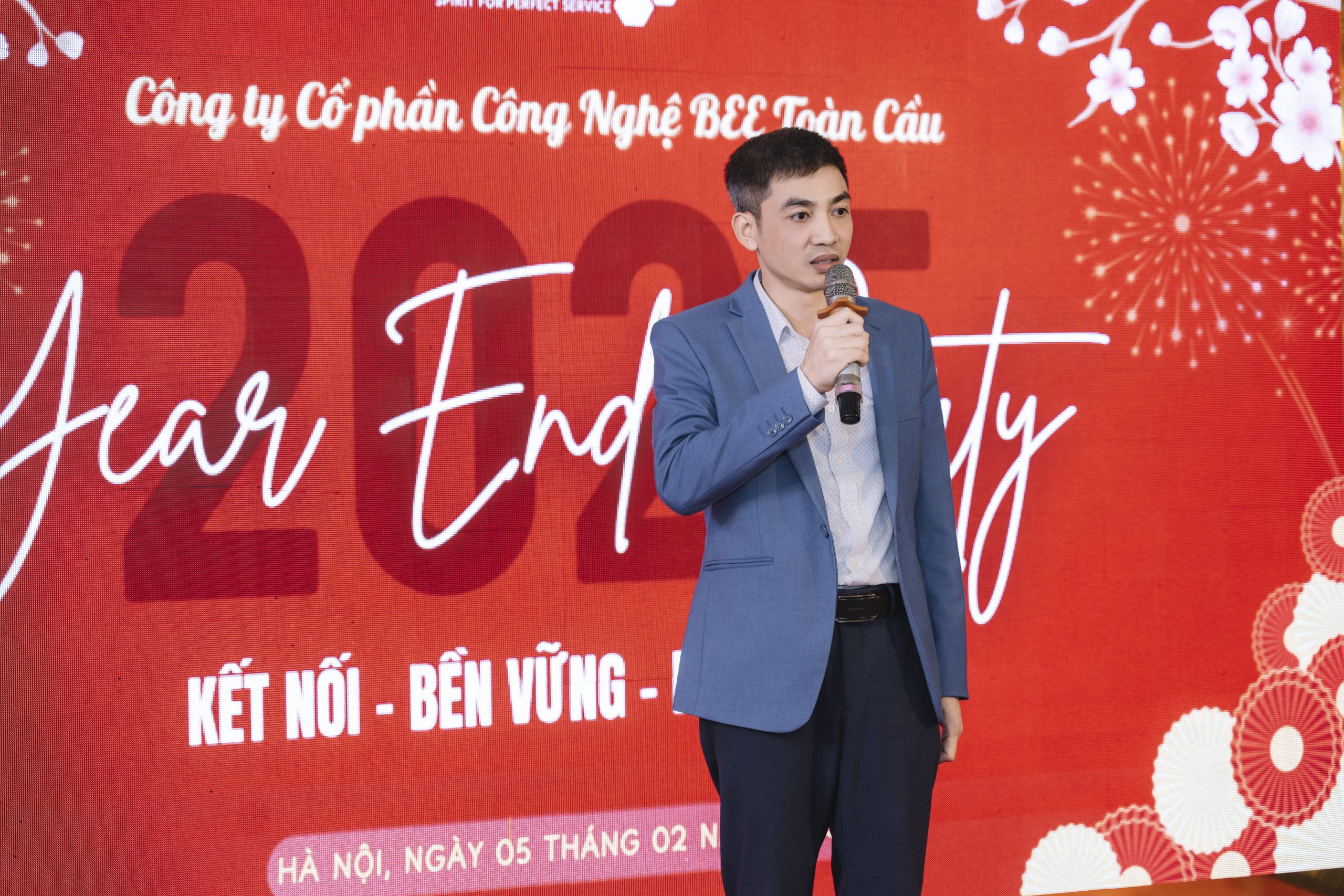 🎙️ Phát biểu tổng kết: Ông Nguyễn An Đông – Chủ tịch HĐQT đại diện Ban lãnh đạo tổng kết các cột mốc vận hành trong năm và gửi lời tri ân đến tập thể nhân viên cùng gia đình đã đồng hành cùng công ty.